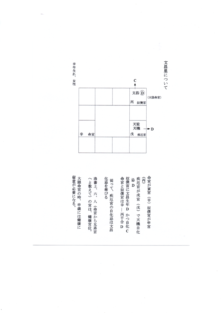 ◇文昌化科C は、福徳宮、兄弟宮、疾厄宮、奴僕宮の宮位は、健康上問題が